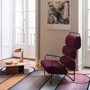 The Sancarlo armchair is a treatise on statics, ergonomics, function and geometry. Achille Castiglioni has taken up again the idea of the Sanluca, designed a few decades earlier with his brother Pier Giacomo. The result is the breaking-down of the seat into a series of cushions which curve to each part of the body they have to support. Sancarlo is a reissue of a classic designed by Achille Castiglioni.