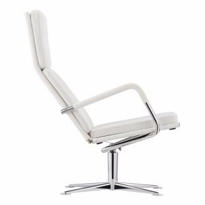 A lounge chair with swivel base and synchronous movement in seat and backrest, that can be completed with C37 ottoman.
