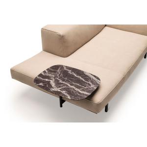 La dormeuse se puede completar con una mesita de madera o mármol atornillada a la estructura portante mediante soporte en tubular de acero.
